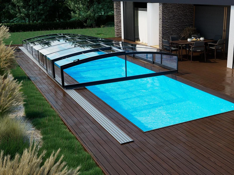 Low pool enclosures are an ideal solution for anyone seeking to combine aesthetics, functionality, and comfort. Thanks to their discreet profile, the enclosure blends seamlessly into the overall appearance of the garden or outdoor area while providing full protection for the pool against debris, harsh weather, and heat loss.
