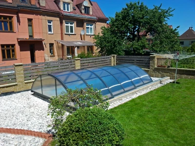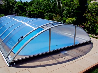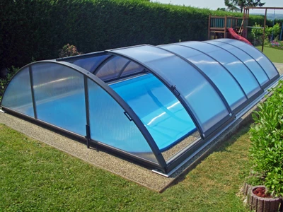 On the other hand, high enclosures create a fully covered area around the pool, enabling comfortable swimming and relaxation regardless of the weather. Thanks to the freedom of movement throughout the entire height of the structure, this option can also serve as a sheltered relaxation zone or a place to gather with family and friends. Both enclosure types are made from durable materials that ensure long lifespan, easy maintenance, and smooth operation.